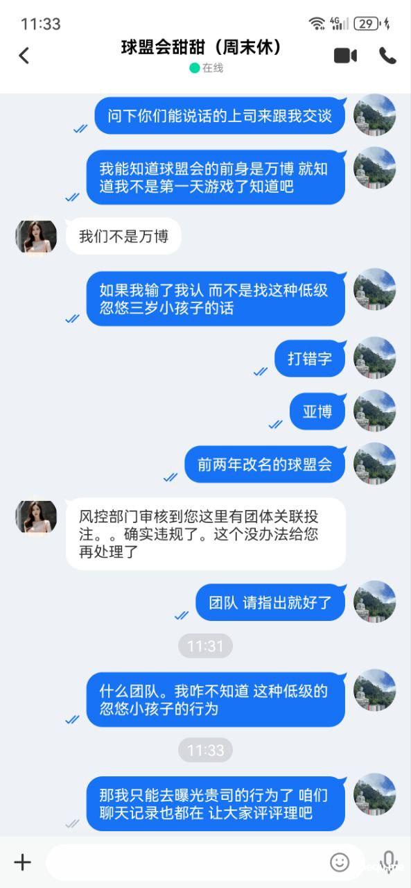 几年前套着亚博的名字 后面更名为球盟会,多年以来一直在这个平台玩 这几天输麻木了所以注册了新号在这边继续开始,没有做代理线,不存在任何套利行为,试问我一个输了千百万的人需要做这种事?估摸着改改运 秉承着老玩家有始有终的态度 所以没有任何防备 还是跟以往大手大脚的下注情况一样 毫无疑问 上来还是以往大手大脚的下注方式 这次充了大概有7~8万,账户负盈利,昨晚8点多提现了两万,提现一直没有审核,今天账户还有22400,官方一问的态度就是让等游戏平台方审核,之前虽然也有过审核经历,但是没有这么离谱这么久,这次算是认栽了,账户里面里外里5万块钱,吃相就这么难看,在你们这大号都v12了 不知道是不是主管中饱私囊,贵司难道没有高层领导在管事吗?寒了老玩家的心,属实了,希望出面与我交涉,否则支付宝商户包括手底下跑分这些卡投诉到底,真是搞不懂,一个稳定的玩家,你们黑这点钱 不够我一个月的流水,这是何必?编理由也编的高级一点 什么叫团队对刷流水 真牵强 说出去都笑死人 你不如直接说我们只提供娱乐 出款是违法的赌博行为 这样不是更好吗?你家对刷吃蚊子肉对刷吗?那还真的是亏得裤子都不剩了吧 我是玩家 不操心这些 但是黑钱就是你们的不对了 挂着亚博的皮,干的都是人事吗?