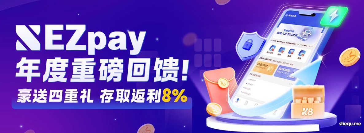 喜讯一:EZpay年度重金回馈广大用户,四重礼金等您来拿,最高可得8%,详细活动内容请见下方