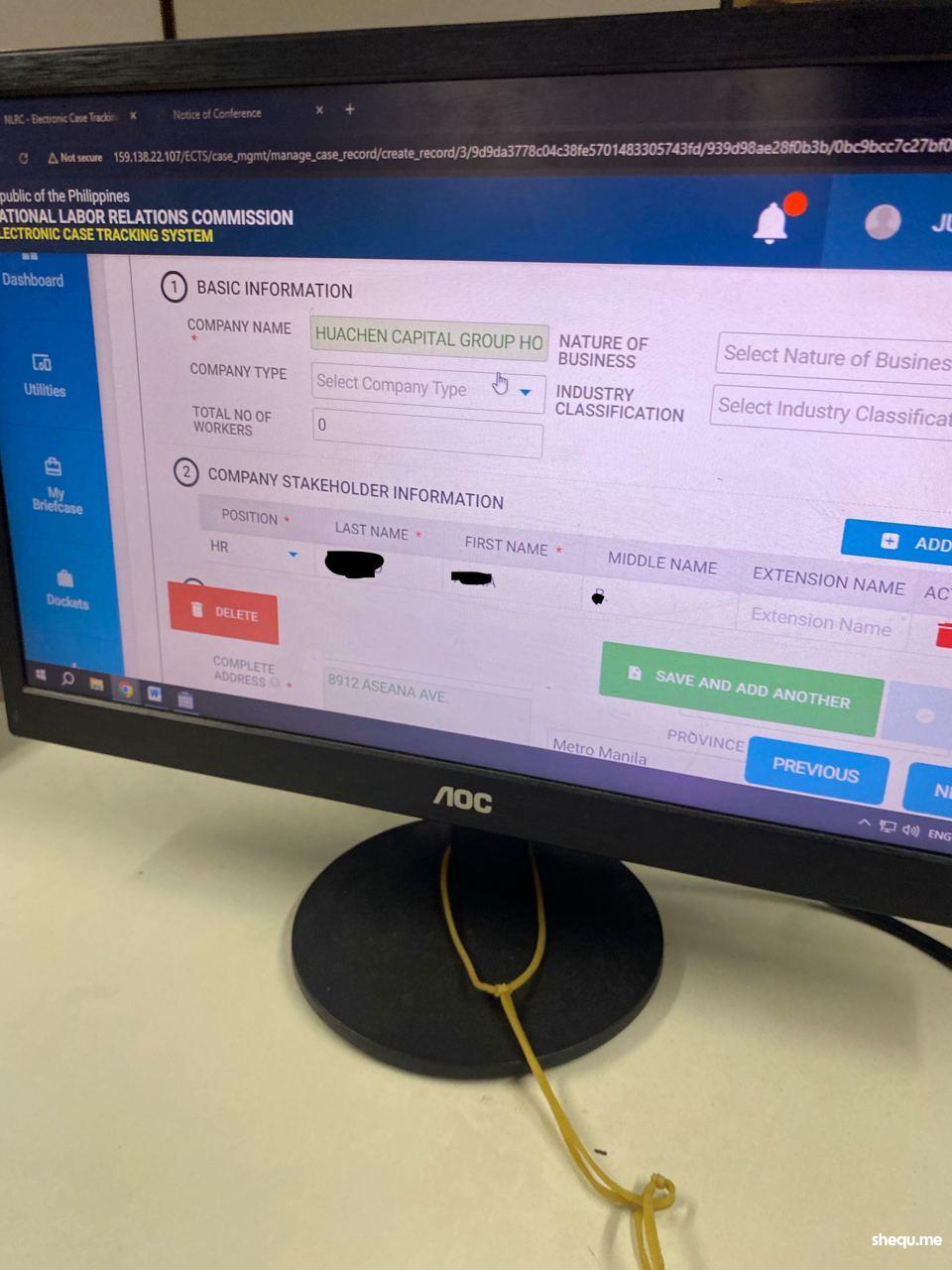 1.到了NLRC之后,先把投诉的具体情况在纸质表上填写好,然后排队,排到你了之后,工作人员就会将你填写的信息录入了到电脑里,具体包括你投诉的公司信息(公司名称,地址,公司联系人姓名,电话号码等)和你自己的个人信息(自己要带一个有效ID);