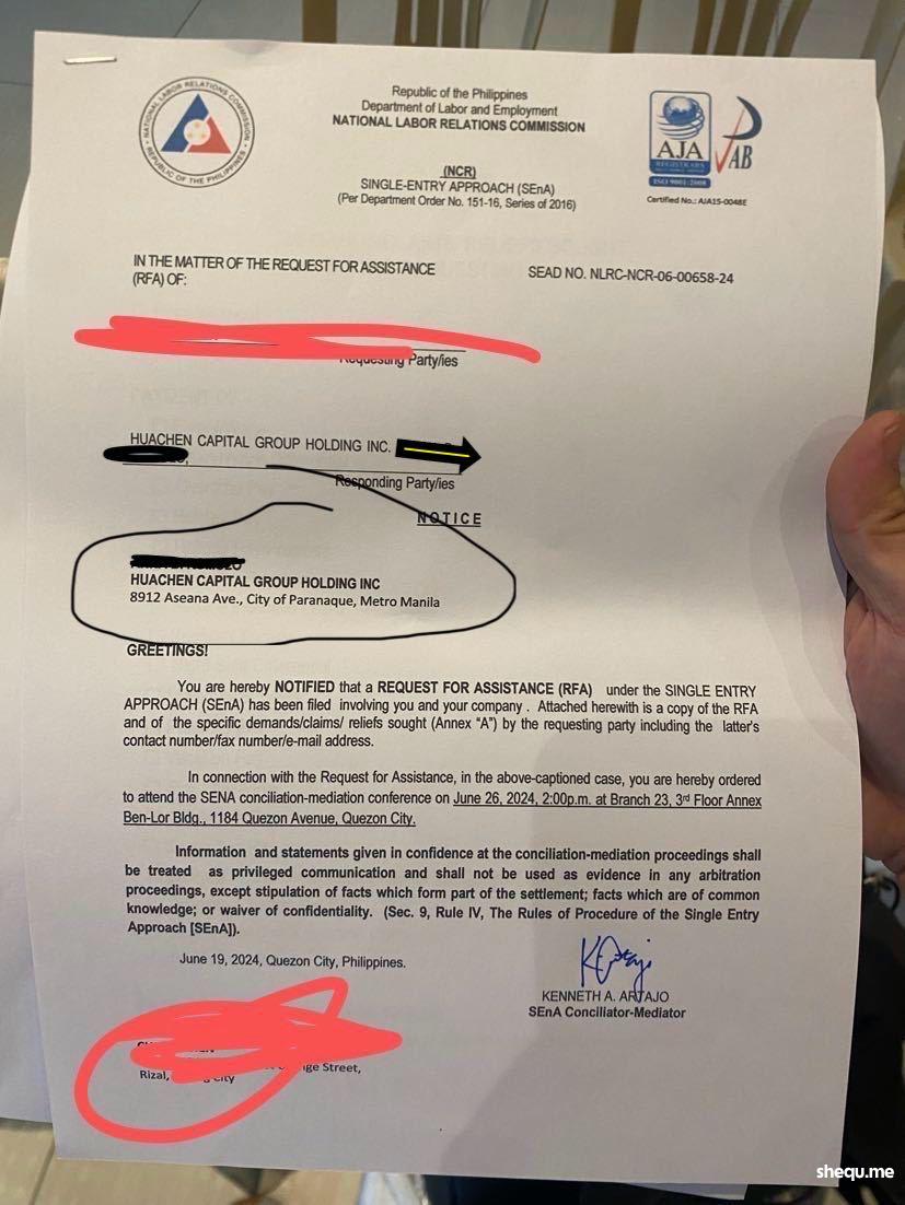 第一次的仲裁结果是 华臣没有跟我达成一致,所以接下来会有最后一轮仲裁会议,总之一句话:这事没完;华臣资本,所谓的在菲合法注册的公司,你们要是真标榜自己合法,请注意一下你们所说所做的行为,这里是菲律宾,不是中国。我有的是时间跟你们掰扯这个事,到底谁是心里虚的一方自己心里没数吗,从BGC的The Finance Centre 搬到了 Parañaque的 PLATINUM TOWER ,最后就是目前的6th Floor,8912 Asean Avenue,Parañaque;而实际上华臣资本这家公司正在办理retirement of business(第一次仲裁会议上对方的法务出了这个certificate),但是原班人马还在。都是换个壳而已,不是吗?