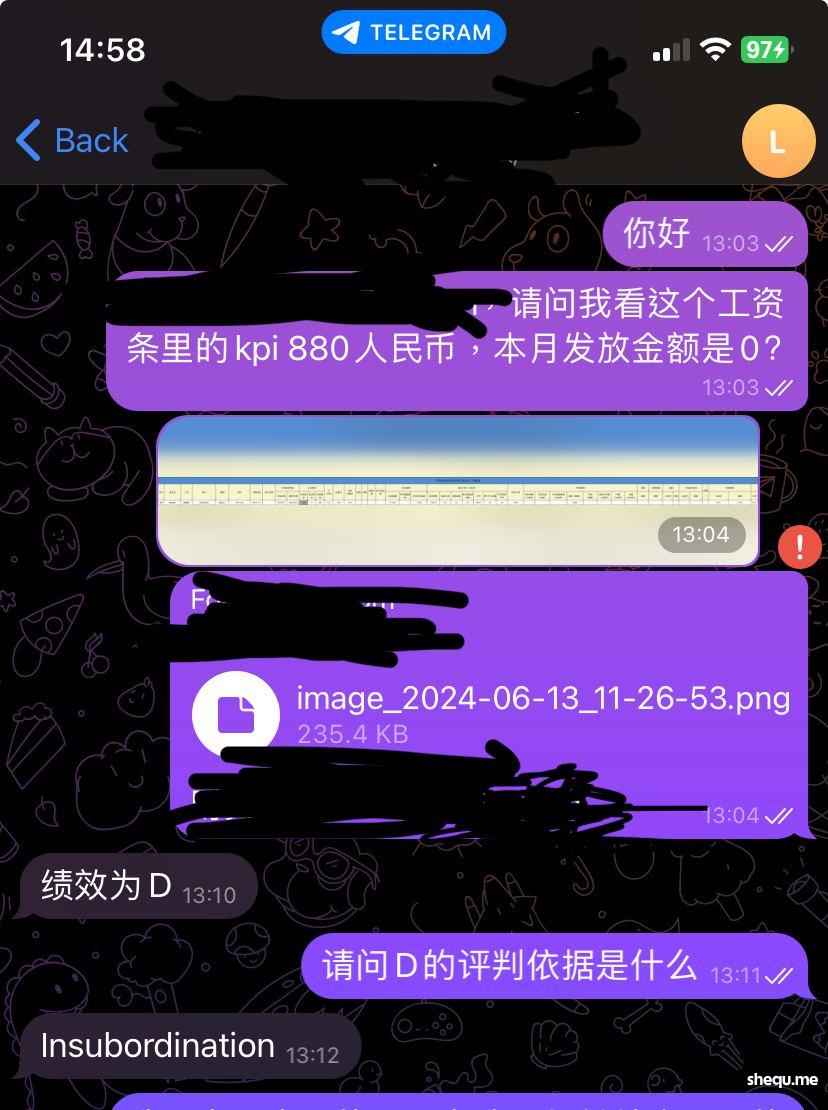 就是因为我这个小员工跟自己的顶头上司大吵一架,让这个领导在十几号人面前丢脸了,因为这个, 最后本应发的绩效被清零;因为这个,你们给我定了“罪” :"不服从”(insubordination),因为这个,''I was forced to resign";当我听到这个理由的时候,再想想这家公司某些领导的管理模式,也就觉得一切都是那么的合理了;你们想跟我讲''法”,讲规定,那就真的有意思了,因为你们对员工做的违法的事就多了,自己心里应该有数吧;我跟你们说过,你们要为对我的所作所为负责;