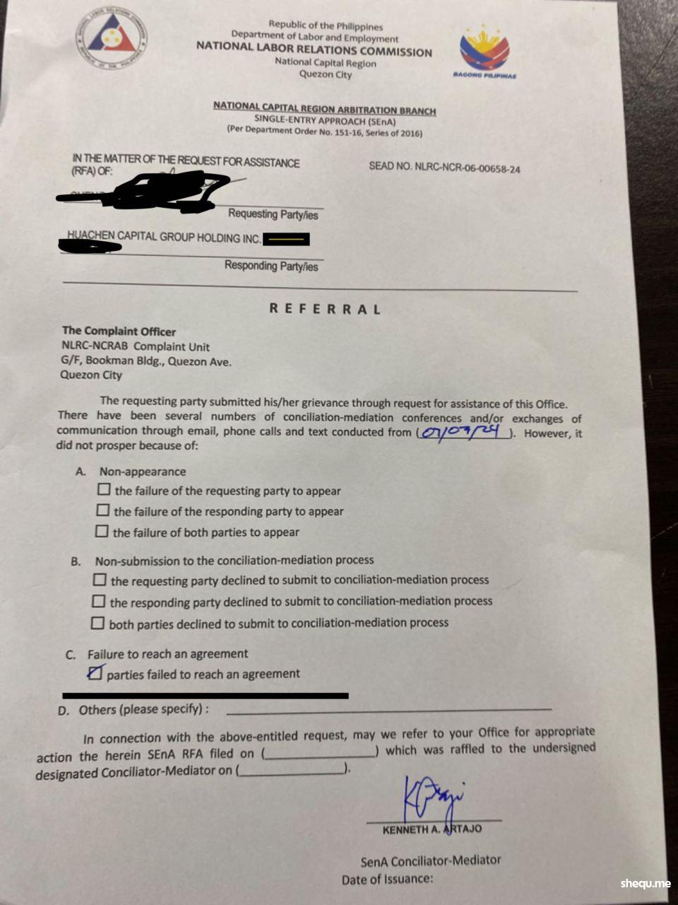 谢谢您们给了我这次机会,去菲律宾国家劳动关系委员会总部National Labor Relations Commission - Main Office,简称NLRC(隶属于菲律宾劳工和就业部 DOLE)投诉你们机会,让我有了一次 通过寻求法律途径维护自身合法权利的经历和经验!