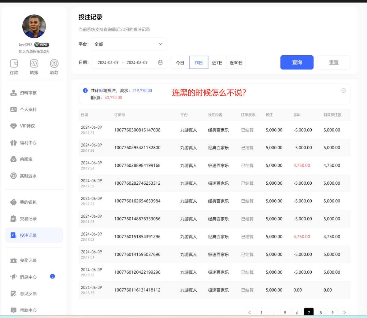 10万流水输7万屁话没有,20万流水赢5万黑款封号,彩,实在是彩!