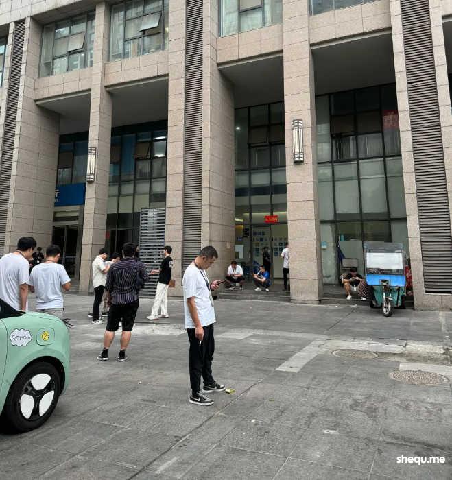 重庆信盟科技发展有限公司合肥分公司楼下,员工们工作间隙下楼休息