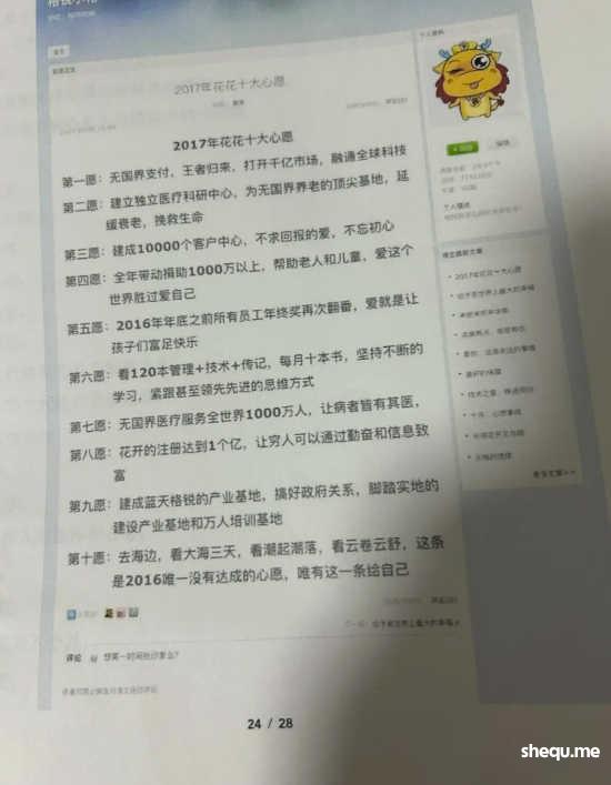 2017年元旦,花花在博客上更新了一篇“花花十大心愿”。